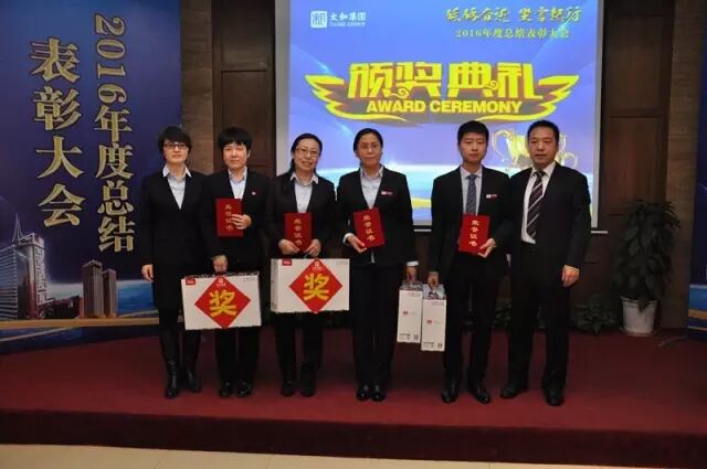 1月16日下午,太和集團總部2016年度總結表彰大會在集團26層會議室隆重召開。太和集團董事長盧凱斌、太和集團總裁兼太和電子城總經理李美璇、財務金融管理中心總監張素琴、地產運營中心總經理趙博超、總會計師付麗等領導出席大會,集團總部及玉村項目全體人員參加會議。