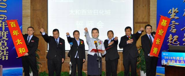 在大會即將進入尾聲的時候,由太和百貨日化城總經(jīng)理馬雪妹帶領(lǐng)商城中層及各部門與會員工共同宣讀《太和百貨日化城2017年誓師詞》,并將代表著太和百貨日化城全體員工2017年的工作決心書贈送給盧董。我們堅信,太和百貨日化城在盧凱斌董事長、李美璇總裁的指揮和帶領(lǐng)下,馬雪妹總經(jīng)理的領(lǐng)導(dǎo)下,定會發(fā)出更加耀眼的光芒,譜寫出炫彩華麗的新篇章!