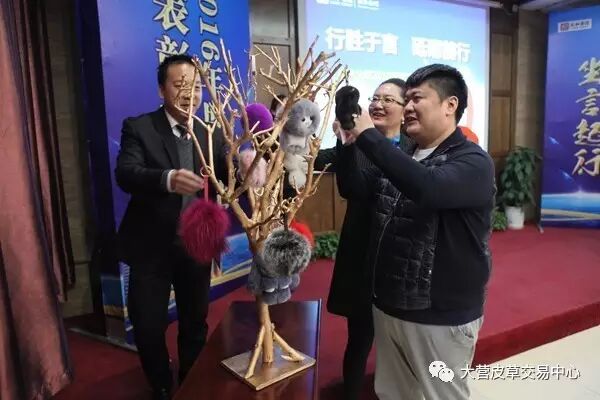 在會議結束前,各位集團領導把對衡水公司的新春寄語懸掛到愿望樹上,并取下工作人員為領導精心準備的極具大營皮草特色的小禮物。各位領導的祝福語分別是: