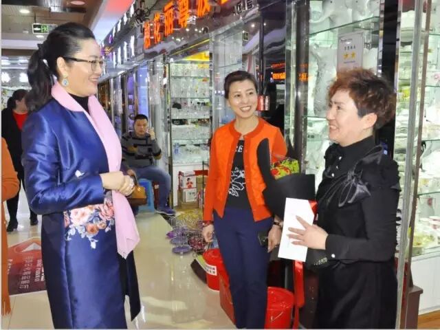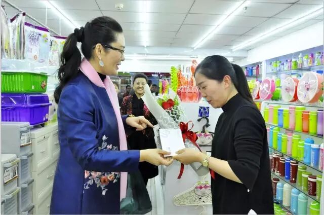 在太和百貨日化城,李美璇總裁等領導來到幾位2016年度金牌經銷商的店面,親手為這些女老板們送上了鮮花和全家福攝影卡,表達了集團對她們的關愛和祝福。經銷商們都感動不已,對太和提供的經營平臺表示感謝,同時表達了今后將與太和攜手同心、共同發展的決心。