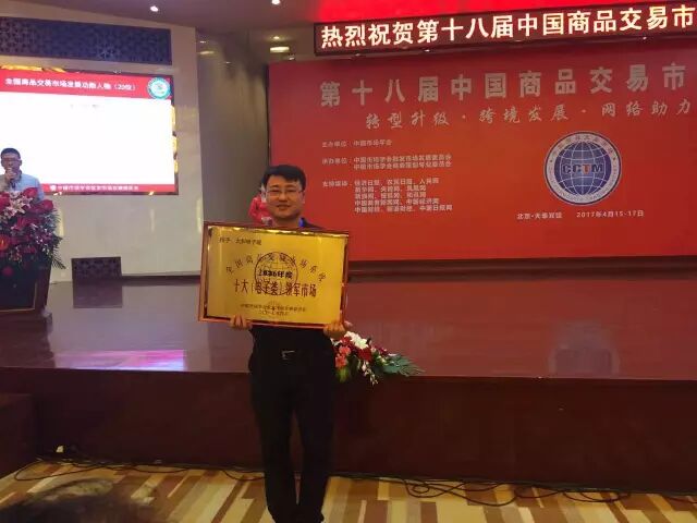 太和電子城榮獲“2016年全國商品交易市場系統十大電子類領軍市場”榮譽稱號! 太和集團總裁兼太和電子城總經理李美璇榮獲“2016年度全國商品交易市場專業市場領軍人物”榮譽稱號! 太和電子城副總經理尚林上臺領取榮譽獎狀 中國商品交易市場發展論壇每年一屆,今年已是18年,目前已成為國內商品交易市場領域最具影響力及品牌效應的行業盛會。本次論壇邀請了國務院發展研究中心、國家發改委、商務部、國家工商總局、中國商品交易市場專家指導委員會等有關部門領導及專家參會指導。論壇匯聚了全國上百家大宗商品行業精英共聚一堂,共同探討商品交易市場的新形勢,新機遇,實現行業共享、共同發展和進步。 第十八屆中國商品交易市場發展論壇現場 太和電子城作為河北省旗艦電子賣場,同時也是河北省首家中國電子行業五星級市場,多年來在李總的英明領導下一直堅守“開拓創新,極致服務”的經營理念,在經濟新常態下,太和電子城不斷引導市場商家做好由供需向智能、服務化市場的轉型升級,同時進一步提升商場服務設施以及細化完善售后服務制度,讓消費者購物更加舒心。 在未來的發展過程中,太和電子城將依然堅持以“市場”為導向、以“創新”為前提、以“服務”為根本,用“工匠”精神專注企業品牌建設,大力實施品牌戰略,實現以品牌效應提高企業的綜合競爭力,助推市場健康繁榮大發展! 參會人員集體合影留念