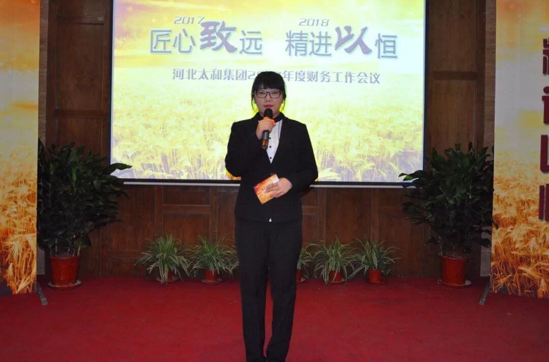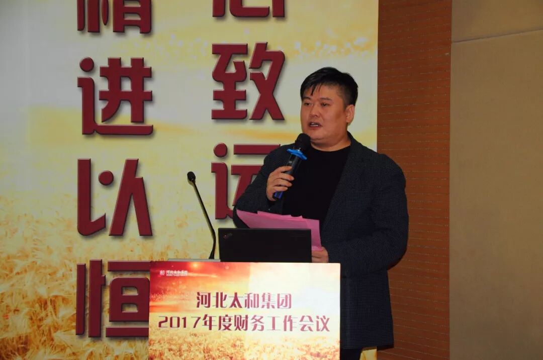 2018年1月23日在太和大廈26樓會議室,按照年初部署,集團財務金融管理中心隆重召開“2017年度河北太和集團財務工作會議”。出席本次會議的領導有:集團董事長盧凱斌、集團總裁兼太和電子城總經理李美璇、集團財務金融管理中心總監張素琴、集團地產運營中心總經理趙博超、集團副總經理兼太和文化禮品城總經理陳暇、易通行典當公司總經理張華、衡水公司總經理李育琨、沽源項目總經理楊淑艷、太和大廈總經理兼太和電子城常務副總經理楊遇春、太和百貨日化城總經理馬雪妹、駝梁五臺項目總經理許詠梅、衡水商業運營總經理張雨兵、集團總會計師付麗、集團總審計師馬慧娟,四會項目副總經理臧單單以視頻方式參加會議,參加會議的還有集團總部及各企業財務部負責人。會議由楚晨宇主持。