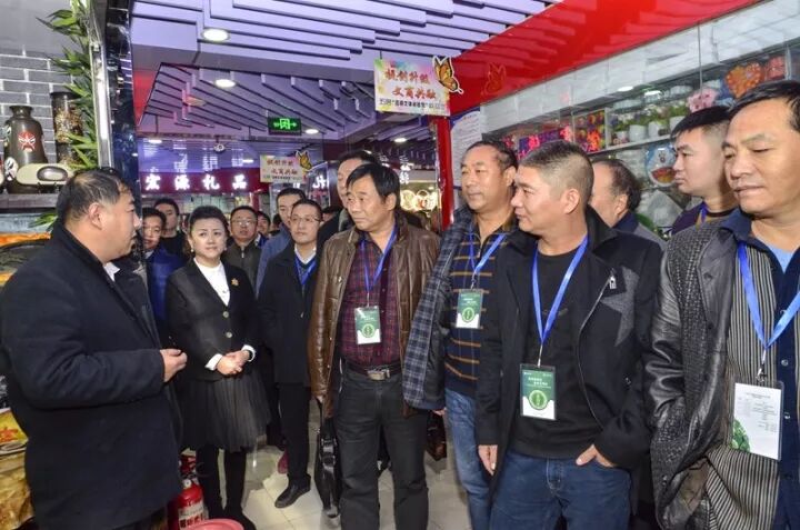 考察團一行首先來到了位于南三條商圈內的太和文化禮品城,作為南三條市場提檔升級的典范,陳暇總經理從硬件升級、品類調整、細化管理、營銷推廣四方面向考察團貴賓詳細介紹了禮品城取得的成績,并帶領大家參觀了禮品城獨具特色的“文”、“禮”、“飾”、“慶”類精品店面。除了實體線下賣場,禮品城在經營過程中還踐行出了一條適合自身發展現狀的互聯網+的全新經營模式,即依托禮品城獨特的產業及規模管理優勢,挖掘實力電商客戶進駐、提供細致周到的物業管理服務,實現線下體驗,線上交易的全新經營模式。在二層易水石古硯店面內,韓金寶總經理詳細介紹了易水硯品牌目前的經營現狀、渠道拓展、模式創新、未來發展等諸多問題,與來自廣東四會的精英們親切交流。