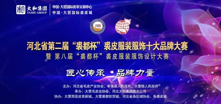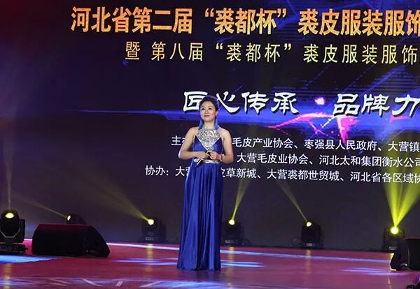 2017年11月7日晚7:00,由河北省毛皮產業(yè)協(xié)會、棗強縣人民政府、大營鎮(zhèn)人民政府主辦,大營毛皮業(yè)協(xié)會、河北太和集團衡水公司承辦的河北省第二屆“裘都杯”裘皮服裝服飾十大品牌大賽暨第八屆“裘都杯”裘皮服裝服飾設計大賽在棗強縣全民健身中心成功舉辦。