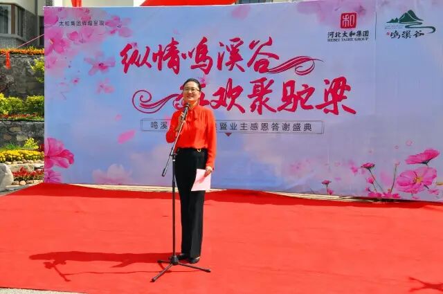 接下來,太和集團總裁兼太和電子城總經理李美璇女士致辭,李總首先代表太和集團對所有嘉賓及新老業主的到來表示感謝,然后向大家介紹了駝梁鳴溪谷項目,并為業主們送上最美好的祝福。最后李美璇總裁代表集團還給業主們帶來了驚喜,凡是在活動期間加入鳴溪谷的業主都可以享受折扣巨惠。