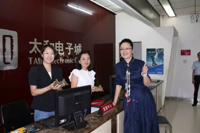 5月30日上午,太和集團(tuán)總裁兼太和電子城總經(jīng)理李美璇、太和大廈總經(jīng)理兼太和電子城常務(wù)副總經(jīng)理?xiàng)钣龃簲y集團(tuán)總部、電子城及大廈的部門(mén)經(jīng)理代表來(lái)到各企業(yè)的辦公區(qū)、各班組值班室,為正在堅(jiān)守崗位的同事們送上了香甜可口的粽子,向大家致以節(jié)日的問(wèn)候,同時(shí)對(duì)大家的奉獻(xiàn)與付出給予了充分的肯定與鼓勵(lì)!